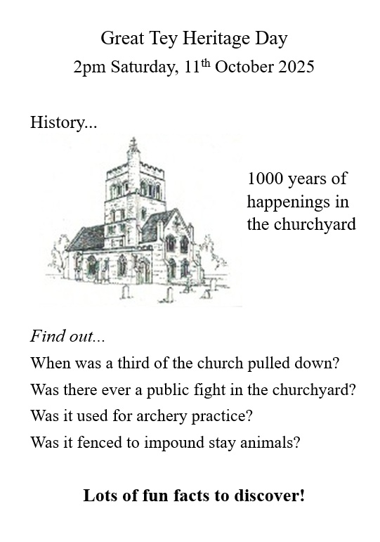 Great Tey Heritage Day 2025 Saturday 11th October 2.30pm
